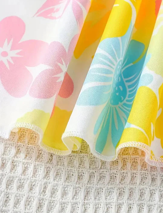 VIBRANT FLORAL SLEEVELESS DRESS WITH BELT FOR GIRLS